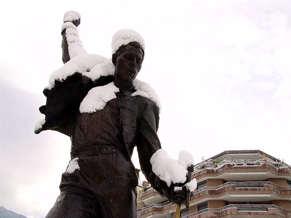 Montreux, 20 février 2005: la statue de Freddie Mercury s'est parée d'un manteau de neige. Photo ID 10004541.