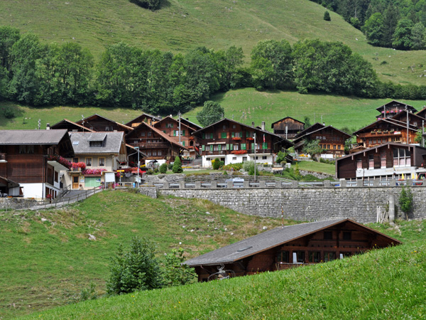 Jaun, on the road to Jaun Pass connecting Gruyère (Fribourg) to Simmental (Bern), August 2012. Photo ID 10050055.